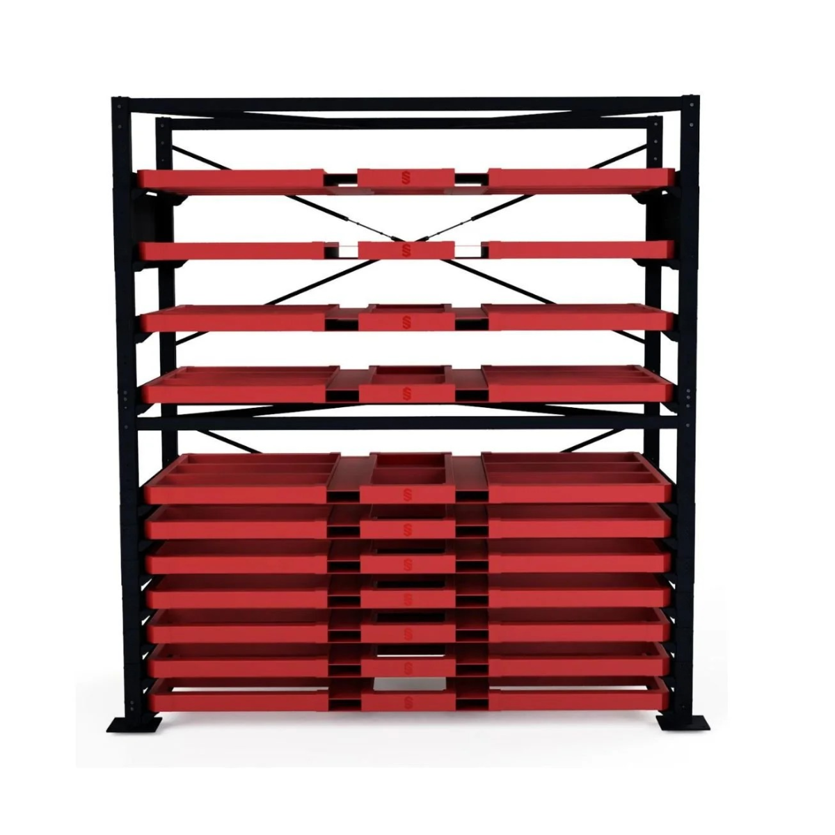 For lighter materials and high-turnover workflows, STACK PRO keeps things moving. Each shelf supports up to 3,000 lbs, ideal for shops that balance efficiency with speed.